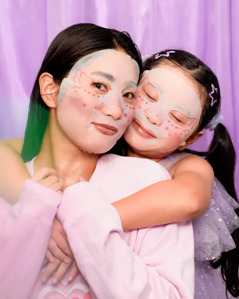 しなこが描いたファミリーマート限定デザインとして、目元にエンジェルの羽をあしらい、頬や鼻周りには星やハートのモチーフが散りばめられています。日常のスキンケアを“魔法”のような時間にする演出が特徴です。