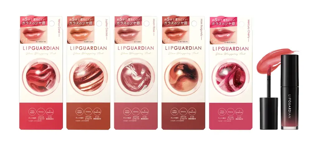 今回の限定色発売により、リップガーディアンシリーズは複数のテクスチャとカラーラインナップを備えることになります。既存ラインとしては、メロウラッピングルージュ(リップカラー)全5色、グロウラッピングティント(グロスタイプ)全5色、マットヴェールティント(マットタイプ)全4色が好評販売中です。