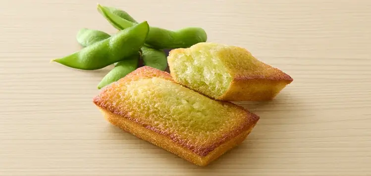 ずんだは枝豆をすりつぶしたペーストで、独特の豆の香りとほのかな甘みが特徴です。本商品ではその香りを損なわないように配合し、フィナンシェの生地と合わせることで和の素材感と洋菓子の焼き菓子感を両立させています。