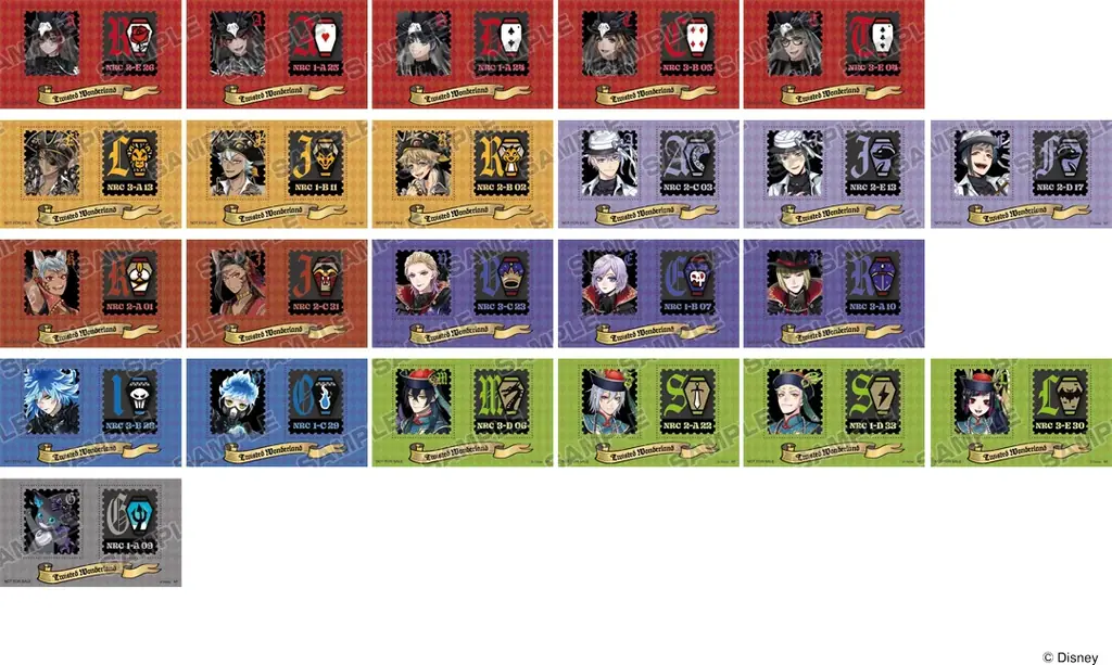 特典として用意されるのは切手風シール(全23種)で、期間中にツイステ関連商品を購入または予約した条件に応じて、ランダムで1枚がプレゼントされます。特典は選択できない点が明確に示されています。