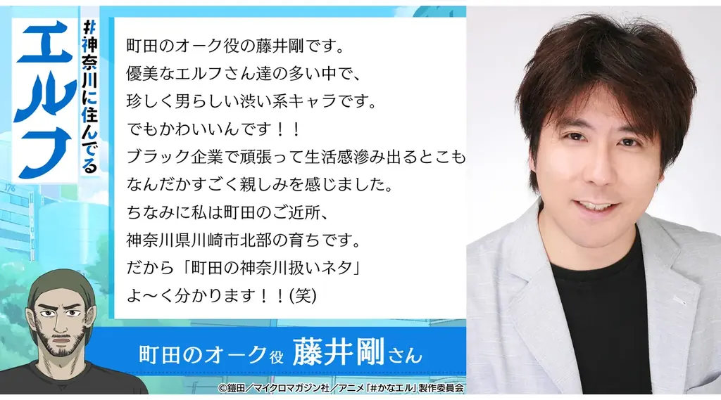 今回発表されたキャスト第2弾は、登場人物の出身地がいずれも神奈川県である点が特徴です。発表によれば、ナレーション&妖精さん役には西山宏太朗さん、横須賀のエルフ役には永野由祐さん、相模原のエルフ役には井上雄貴さん、町田のオーク役には藤井剛さんがそれぞれキャスティングされています。