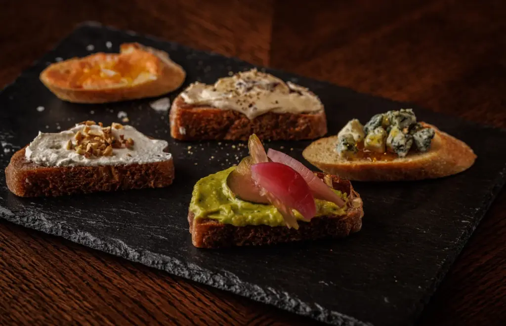 パンに合わせる前菜や調味は種類が充実しています。削り立てのチーズやテリーヌ、燻製クリームなどが用意され、オリジナルオープンサンドを自分で作る楽しみが推奨されています。