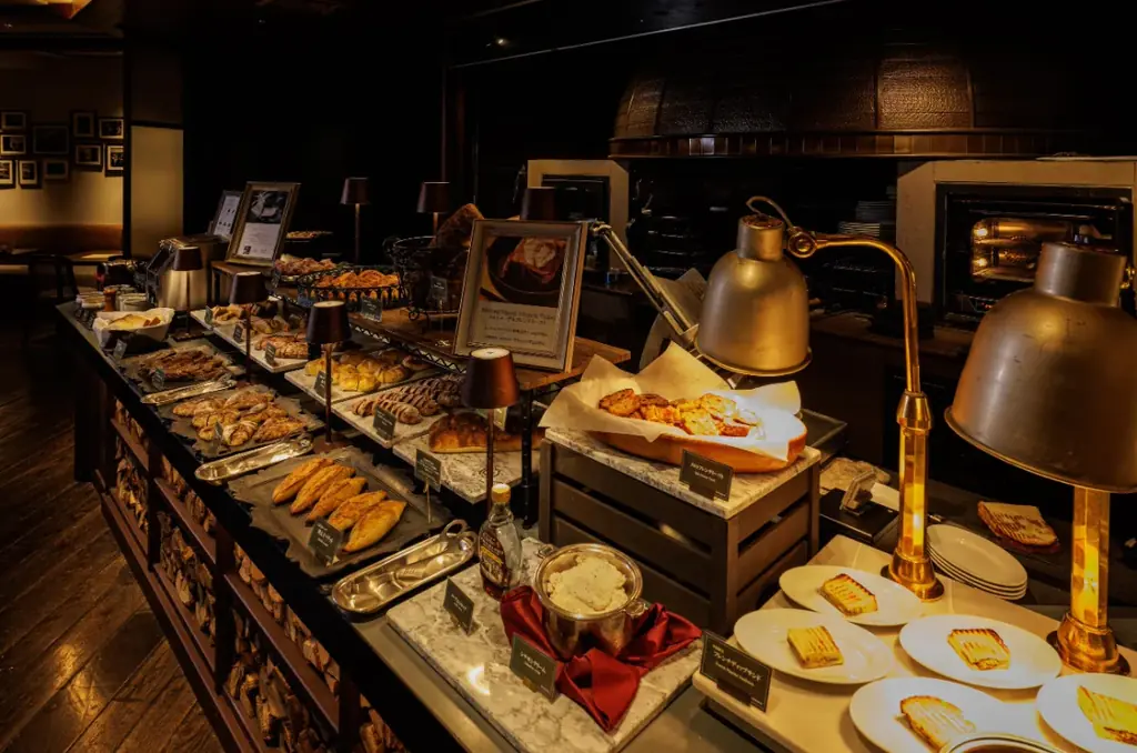 | 主なメニュー | フォカッチャのライブカット、フレンチディップサンド、メルトメープルフレンチトースト、生ハムとチーズのクロスティーニ、削り立てチーズ、テリーヌ、燻製クリーム、イタリアンタコス、パンプキンポタージュ、ティラミス、マロンのパウンドケーキ、葡萄ゼリー、こがさかベイクの和紅茶(テーブルサービス)、季節のオリジナルアイスティー |