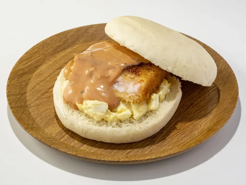 エビカツバーガー とんかつ まい泉 1個 750円 エキュート上野限定。特製オーロラタルタルソースと玉子サラダを組合せ。