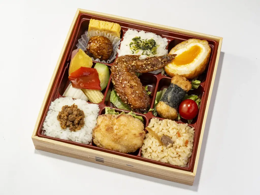 2. 7種の鶏ごちそう弁当(鶏三和) 1折 1,480円 販売期間:11/18(火)~12/17(水)。名古屋コーチン卵使用の9マス弁当。