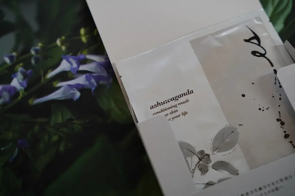 - ・鎮静・抗酸化・抗炎症に着目した和漢植物を贅沢に配合したシートマスクです。和漢植物の中でも代表的な成分としてアシュワガンダを採用しています。