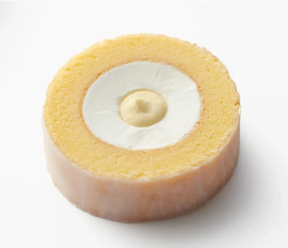 - バームクーヘンロール:販売価格 594円(税込)。生クリームとカスタードクリームをたっぷり詰めた手のひらサイズのバームクーヘン。冷やしてもふわふわの食感を保つ専用レシピで仕上げられ、7月のオープン以来約9,000個を販売。日持ち:当日中、※冷蔵販売。