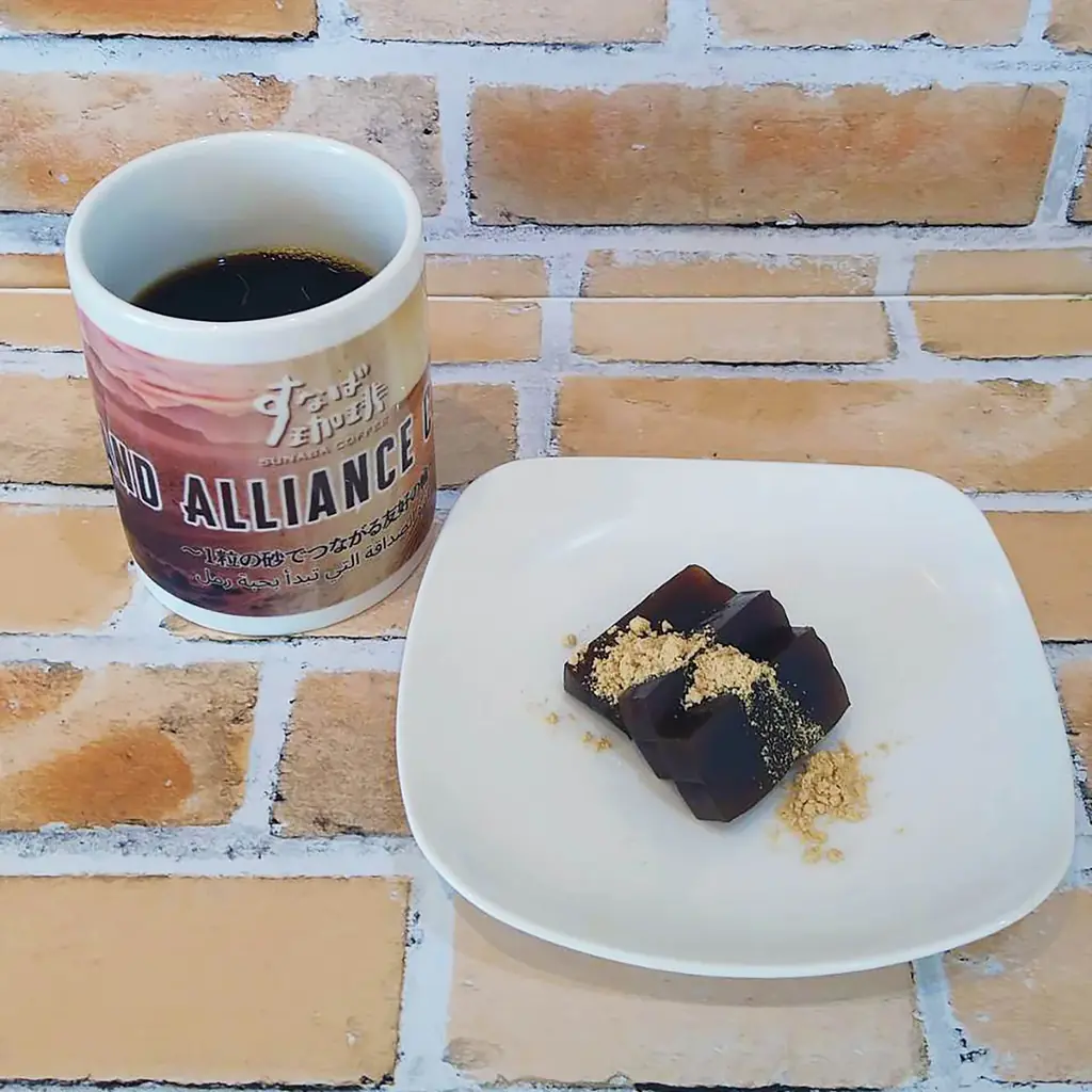 サンドアライアンスコーヒーと羊羹セット 800円 鳥取砂丘とヨルダンの赤い砂で焙煎した豆のブレンドコーヒー+羊羹