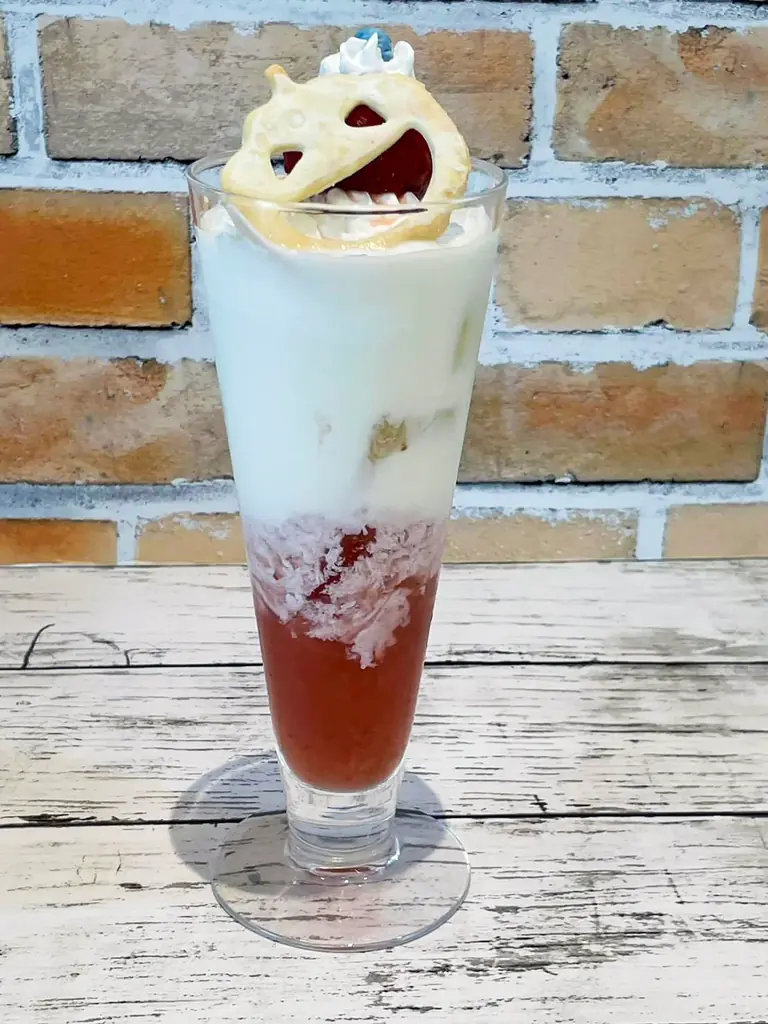 「とっておき」いちごオレ 800円 鳥取県産いちご「とっておき」と白バラ牛乳の2層ドリンク