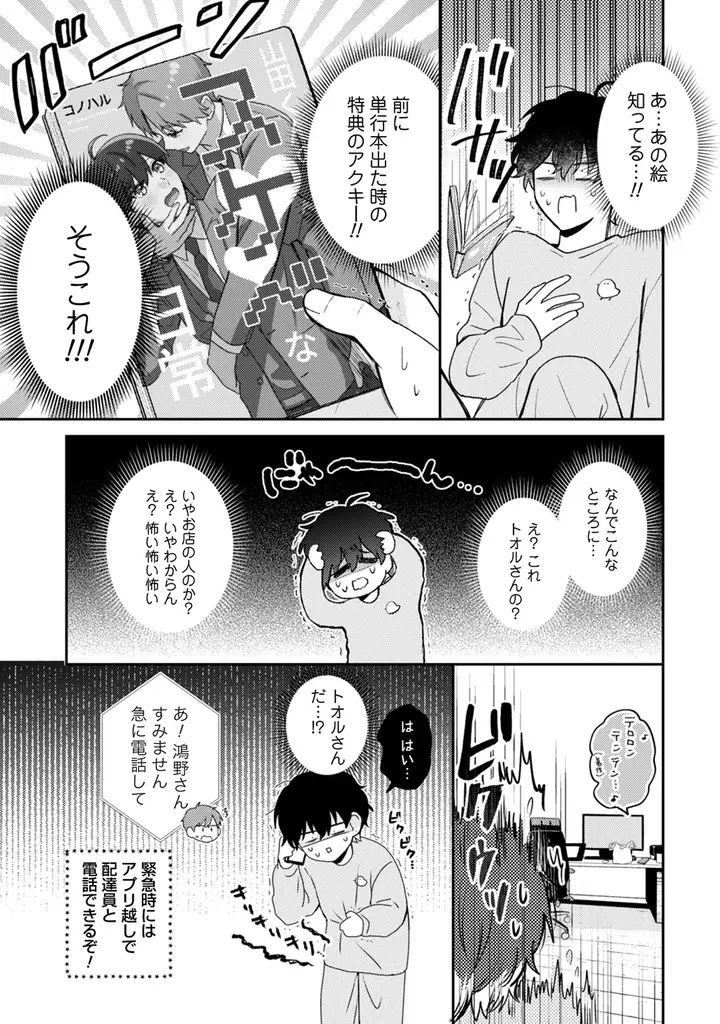いつもどおり彼が届けてくれた商品に紛れ込む著書のグッズ。回収に現れた推しこと【トオルさん】は、BLが好きで、春の漫画が好きで、受けが可愛いって……さらに、マンガのえっち度UPを手伝いたいとまで言い出した!こんなに都合が良いことってありえるの!?!?イケメンワンコ配達員×引きこもりBL漫画家のハッピー推し活ラブコメディスタート!「俺、どうなっちゃうの~~~!!!」