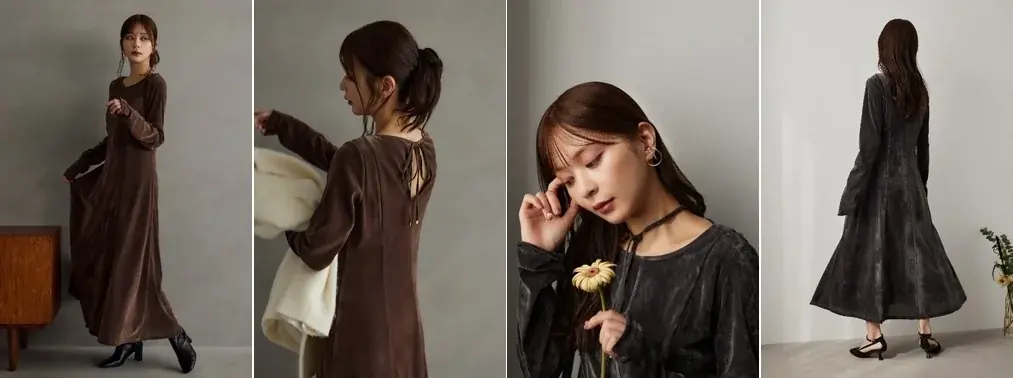 今回のコラボレーションは「冬の特別なシチュエーションに合わせて着こなしたい」というコンセプトのもと、艶やかな質感とこだわりのシルエットで魅せるベロアロングワンピースと、上品な佇まいに甘さを加えたアシメプリーツミニスカートの2アイテムで構成されています。商品の発売は2025年11月21日(金)12:00からを予定しています。
