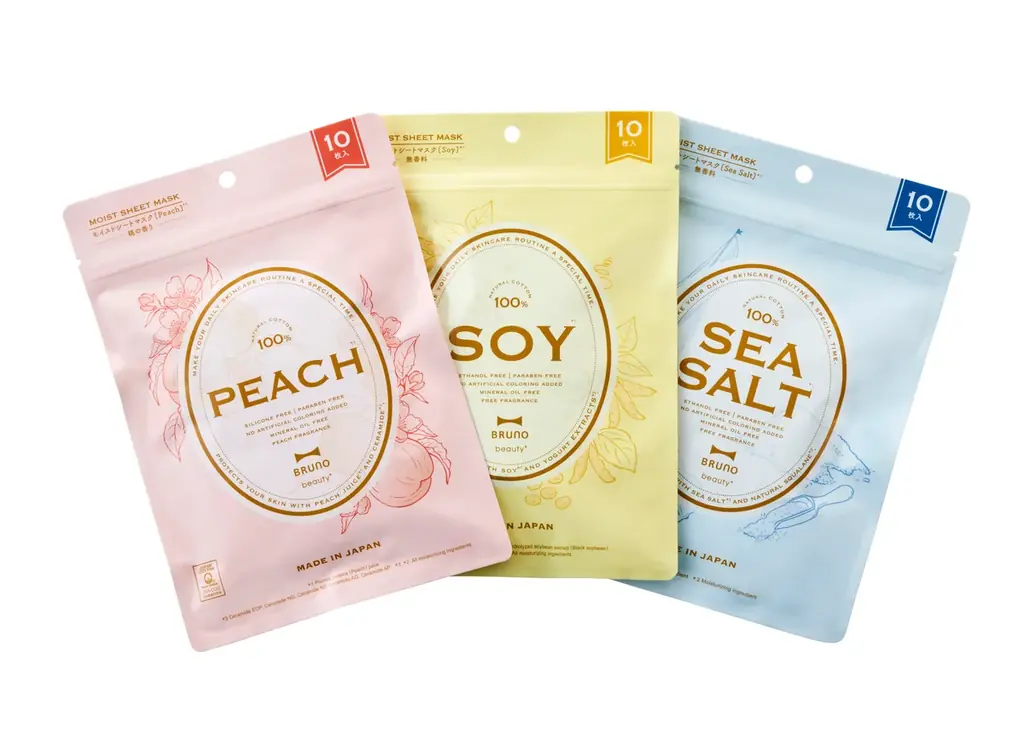 | 配布物 | BRUNOモイストシートマスク(10枚入り)いずれか1点(Peach / Soy / Sea saltのいずれか、選択不可) |