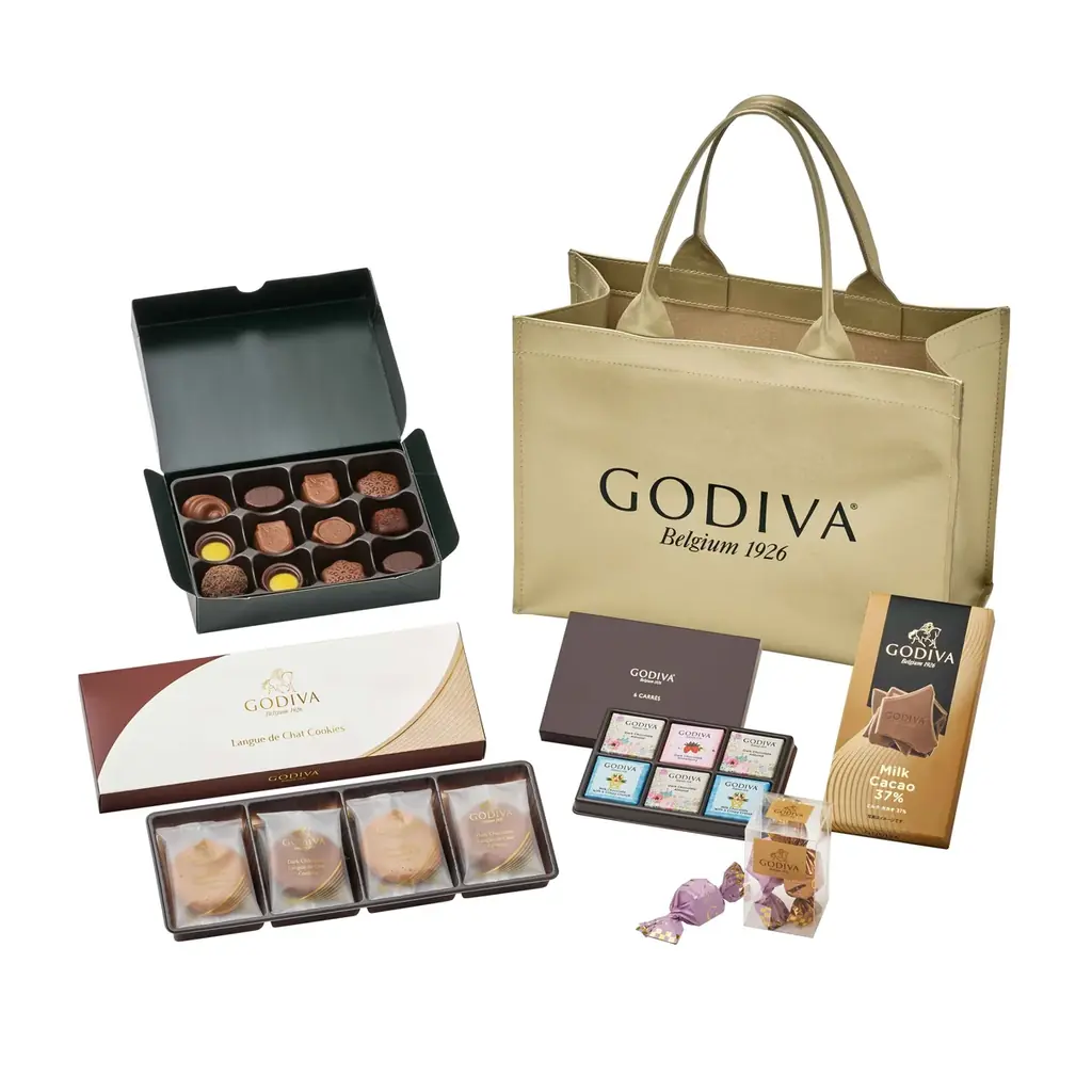 発表文では、バッグ本体にマットゴールドの華やかなオリジナルバッグを採用し、中にはチョコレートやクッキーなどの多彩な詰め合わせを入れている点が強調されています。販売は全国のゴディバショップ、GODIVA café、ゴディバアウトレット店、ゴディバ オンラインショップなど複数のチャネルで行われます。