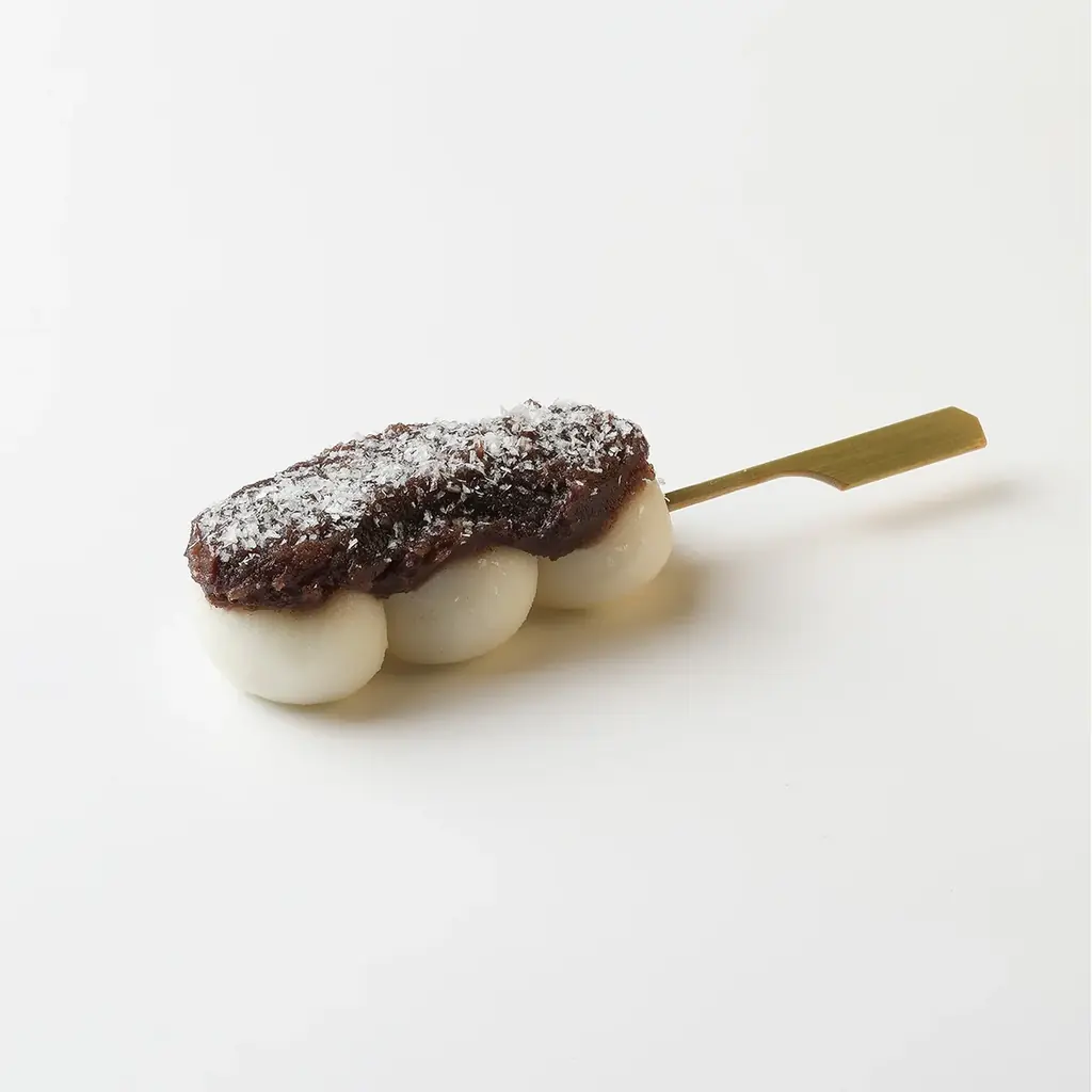 玉澤謹製のあんこ餅(なめらかな口当たり)に繊細で柔らかな霜塩を添えることで、風雅な香りと上品な甘味を演出します。 - 霜塩団子(通季・イートイン)