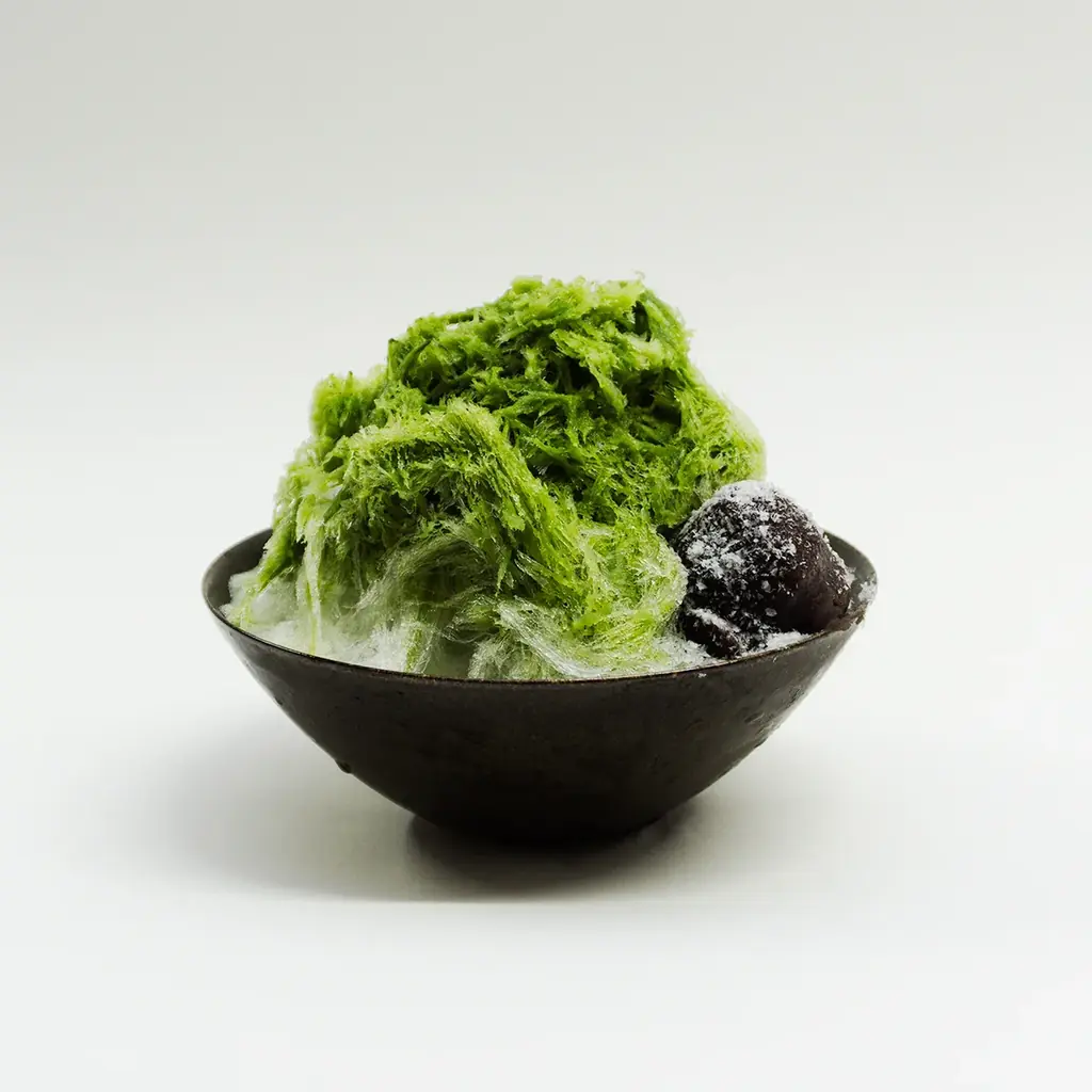 北海道産小豆を用いた玉澤謹製の滑らかな餡を串団子にし、霜塩を添えて提供。霜塩のやわらかな食感が餡の甘さを引き立てます。 - 霜塩小餅かき氷(夏季・イートイン)