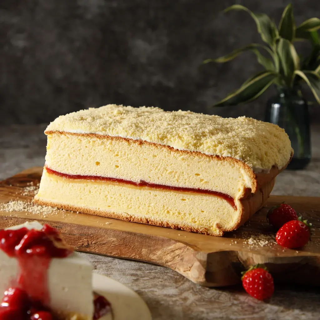- GRAND CASTELLA(タワーヤード 2階): 苺のダブルフロマージュカステラ ¥2,365。プレーンとチーズケーキ風味の二層カステラの中に自家製ベイクドチーズシートと苺ジャムを忍ばせ、ケーキクラムをトッピングした商品。