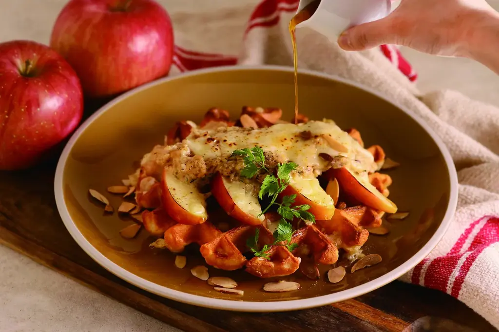 - ココノハ(ウエストヤード 4階): 焼き林檎とツナのチーズメルトワッフル ¥1,430。ソラマチ限定。ハーブ香るツナと焼きリンゴにチーズをのせ、メープルシロップとチーズの甘じょっぱさが特色。