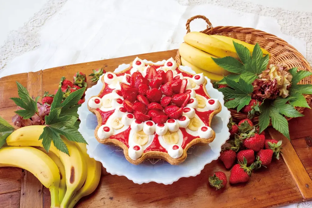 - キル フェ ボン(イーストヤード 2階): 金平糖型 イチゴとバナナレアチーズのタルト。販売期間は2025年11月7日(金)~11日(火)。価格はテイクアウト<ピース¥993/ホール(25cm)¥9,936>、イートイン<ピース¥1,012/ホール(25cm)¥10,120>。バナナ風味のレアチーズにホイップとイチゴをトッピングしたタルト。