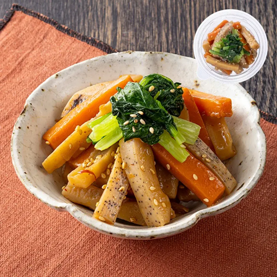 茨城県産れんこんのきんぴら 375.84円 11月3日(月)〜 関東 皮つきのれんこんを大きくカットし、赤唐辛子をアクセントにしたシャキシャキのきんぴら。皮に黒い斑点がある場合あり。