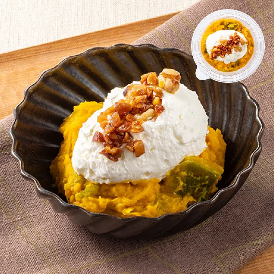 和寒町産かぼちゃとナッツのスイーツサラダ 298円 321.84円 11月4日(火)〜 北海道 和寒町産かぼちゃ、クリームチーズ・ホイップ・ナッツ