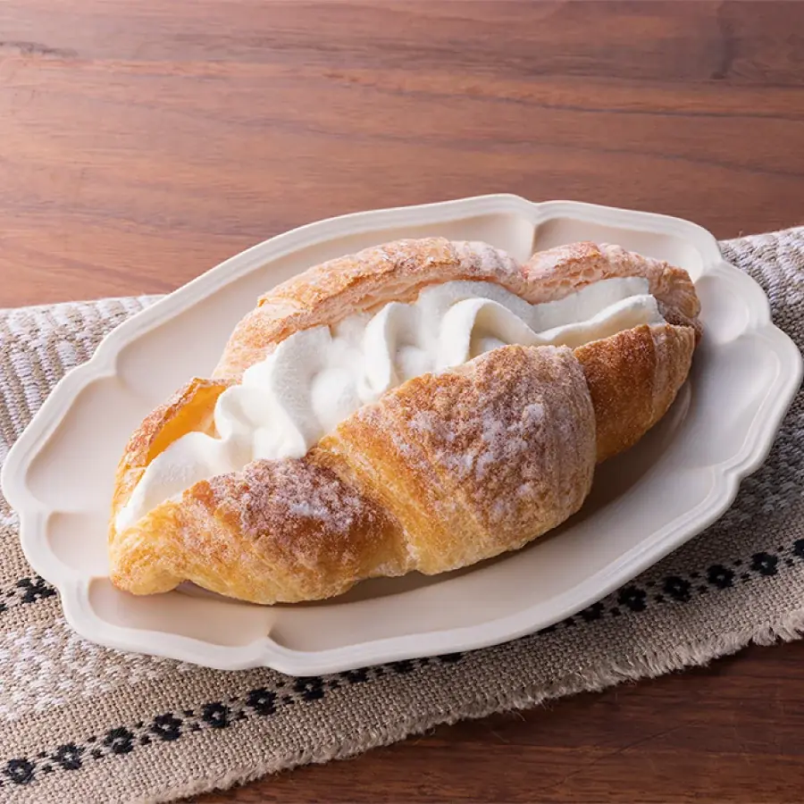 特徴:北海道産牛乳を使用したクロワッサン。ホイップクリームを挟んだ菓子パンで、ホイップにも北海道産牛乳を配合し、濃厚なミルク感を味わえる設計です。