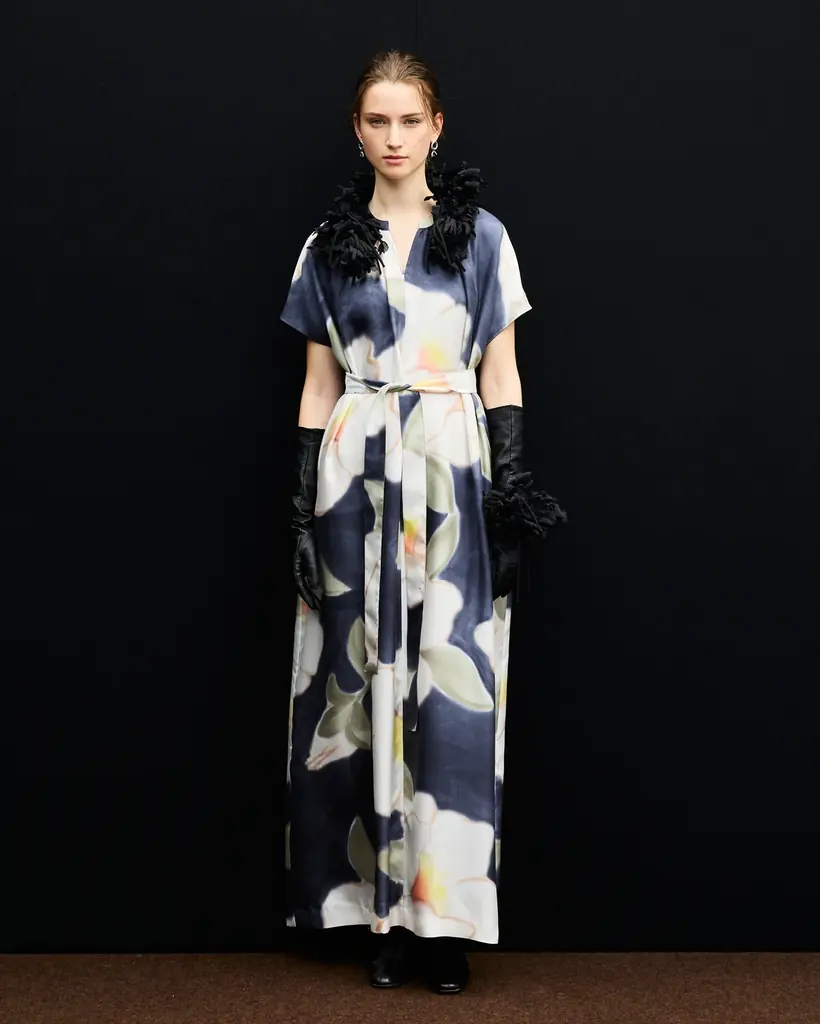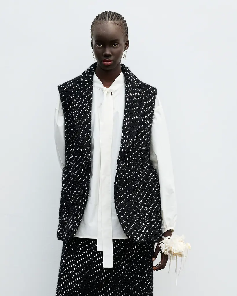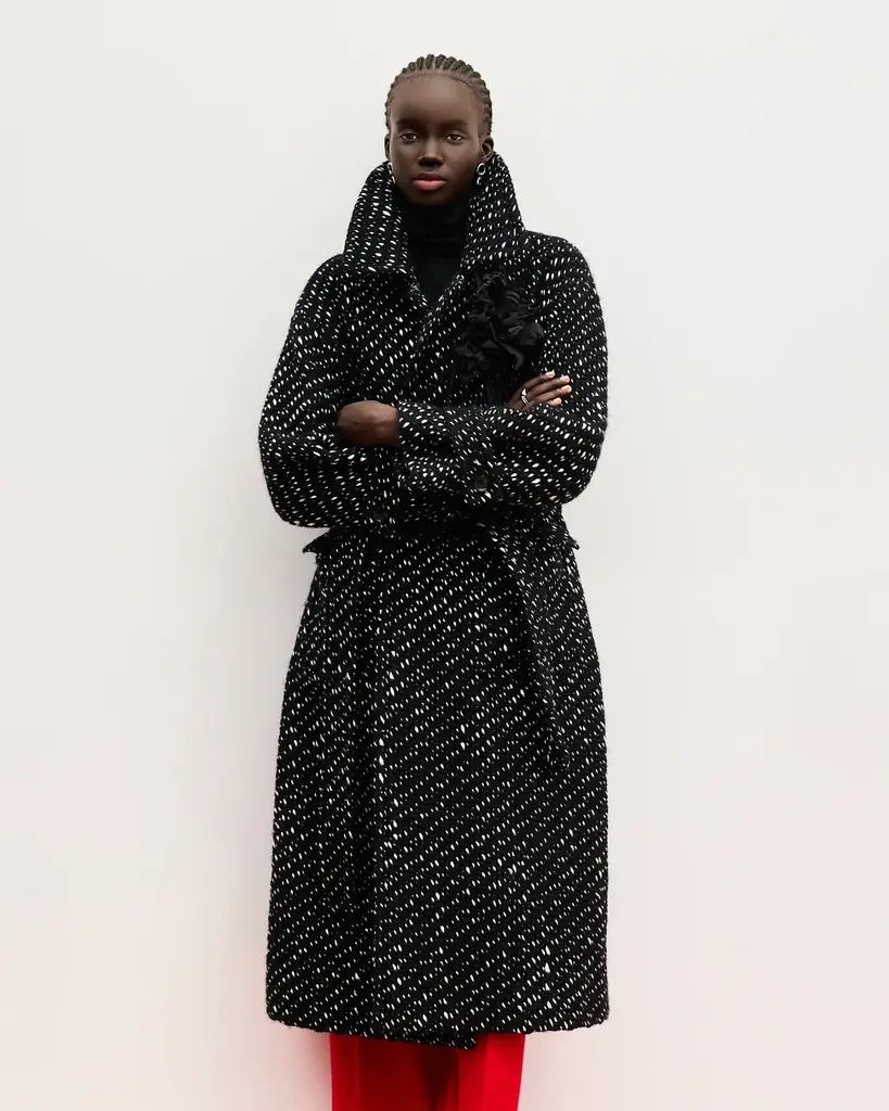 ポップアップでは尾州の上質な生地を用いたコートやドレス、ブラウス、ベストなどを中心に展開。伝統的な織りの表情を生かしたアイテムは、素材の持つ気品とミニマルなシルエットのバランスにより、大人の装いに鮮烈な印象を与えることを狙っています。