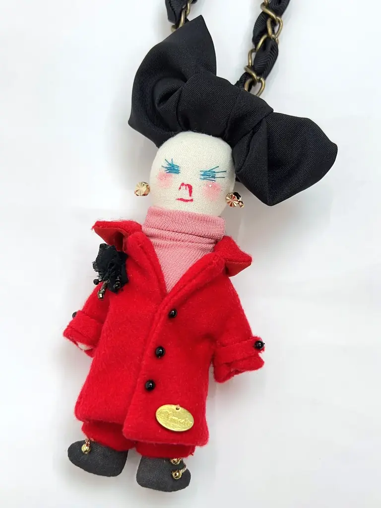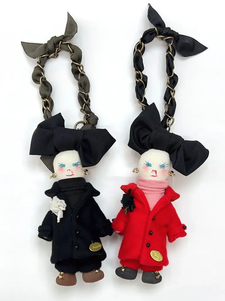 次に、アクセサリー・コラボレーションとして「DEMODEE(デモデ)」とのドールチャームを発売します。尾州の余剰生地を生かしたクラフト感のあるチャームは全2種類、価格は各種 ¥13,200(tax in)です。