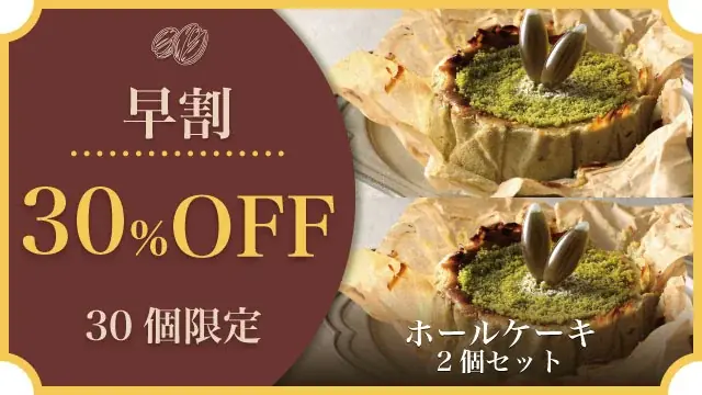 • 早割30%OFF シチリアピスタチオバスクチーズケーキ 2セット:金額 7,650円(リターン個数 30個)