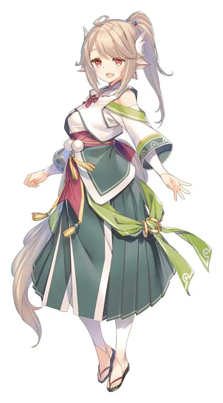 期間限定キャラクター:コタマ[翔破の操](CV:薄井友里)。本キャラクターはイベント「見えるは夜明けの兆し」および関連遺跡で特効効果を発揮します。さらに今月の英傑縁結びでは「コタマ[翔破の操]」に加えて新たなキャラクターが1人登場予定で、単体ピックアップが2回、2人同時ピックアップが1回、合計3回の実施を予定しています。