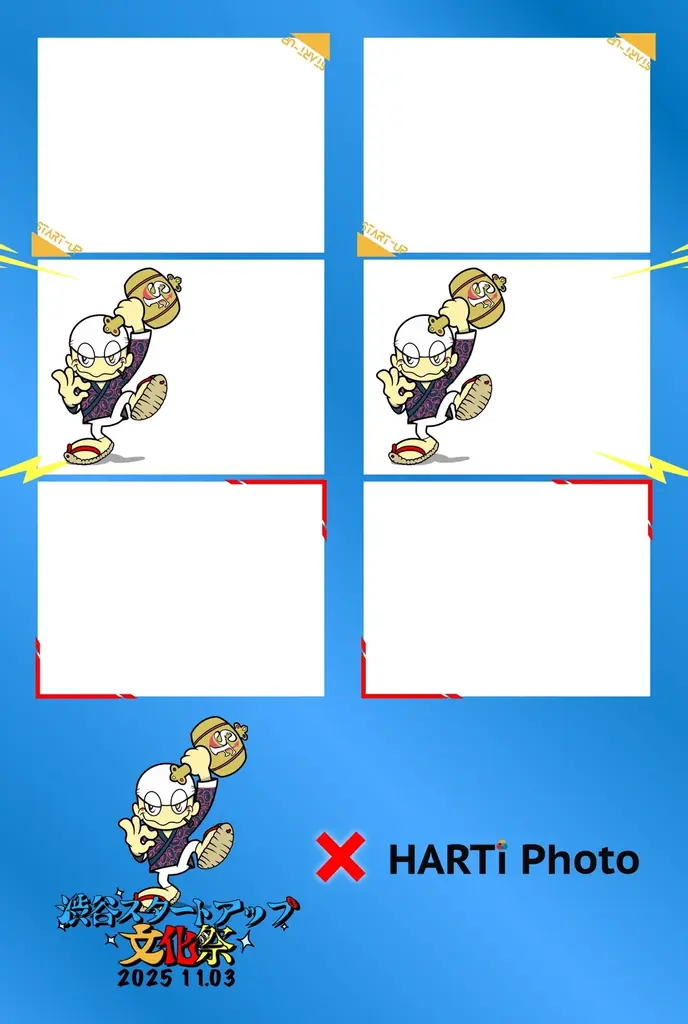 「渋谷スタートアップ文化祭限定フレーム記念撮影体験」を実施します。文化祭限定デザインのオリジナルフレームでの記念撮影が可能で、スタートアップのマーケティング視点とHARTiPHOTOのアート性が交差するフォト体験が提供されます。