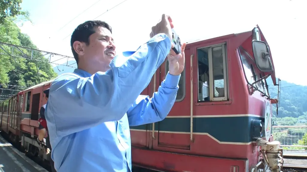 後編は、急勾配区間を登るための特別な設計を持つアプト式列車に乗車するシーンから始まる。車内からも急角度が感じられ、西村は車窓の景色と自らの反応を交えながら沿線の見どころを掘り下げる。