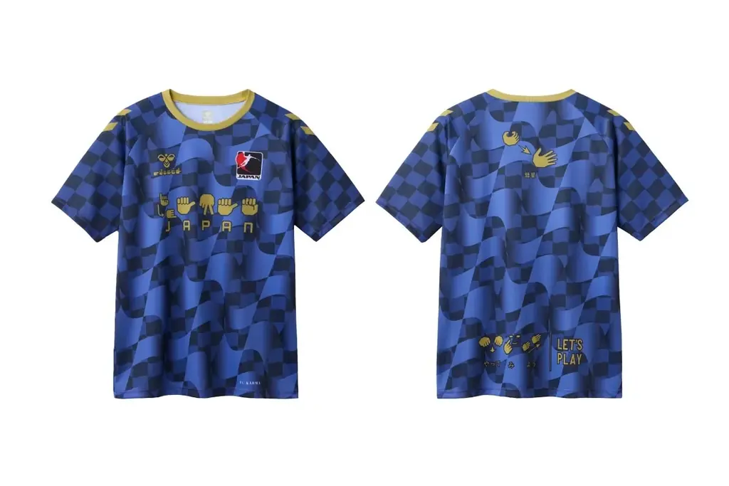 ユニフォームはコートプレイヤー用とGK用に分かれ、それぞれの機能美を保ちながら視認性やメッセージ性を高める設計になっています。背面上部には日本代表を示す「JAPAN」を指文字(手話の指文字)とアルファベットで併記し、手話を配置することでユニフォーム自体がコミュニケーションツールとなる意図が明確に示されています。