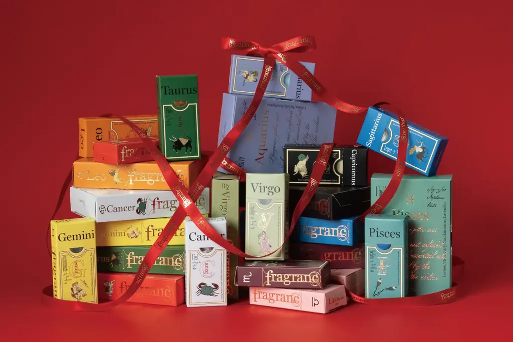 パッケージデザインは12星座の個性を表現するビジュアルに加え、各星座のメッセージが添えられています。誕生日から選ぶ「パーソナルなギフト」としての側面が強調されており、ホリデーシーズンやクリスマスギフトとしての提案もなされています。