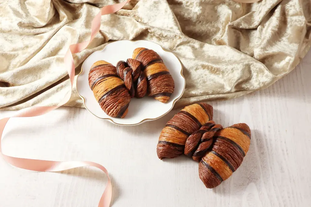 - 説明: カカオ香るクロワッサン生地にハイカカオのショコラクリームを詰め、その上に生ショコラをトッピングして二重にショコラを閉じ込めて焼き上げた商品です。ひと口ごとに奥深いカカオの味わいが感じられる、チョコレート好きを意識した贅沢な仕立てです。