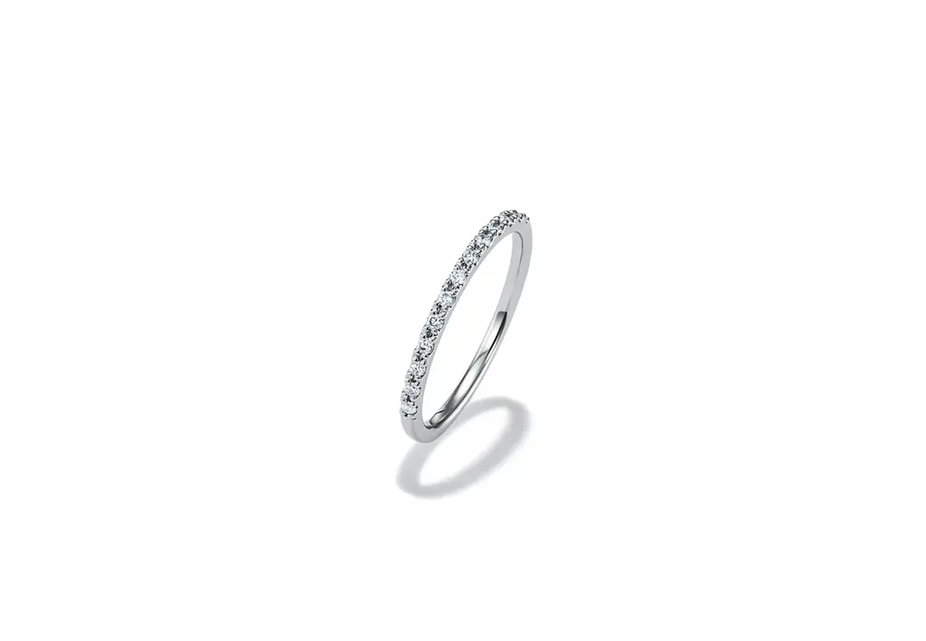 Evermoreは「これからもずっと」をコンセプトに、“時を越えて輝く未来”をイメージしてデザインされたエタニティリングです。おふたりの未来を優しく照らす光のように紡がれたダイヤモンドが環状に配されたシンプルで永続的な美しさを持つリングです。