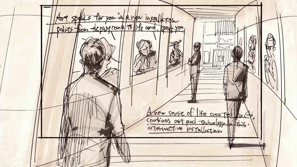 歴代の絵画が動き出し語りかけるようなインスタレーションを通じて、AIが創出する新たな生命観やアートの伝達方法を探ります。