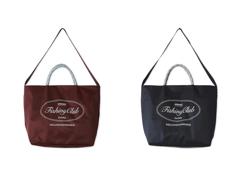 漁網をリサイクルしたナイロン素材を使用し、emmiオリジナルの“emmi Fishing Club”ロゴや釣りをイメージするディテールを取り入れたコレクションです。デザインは日常使いからアウトドアまで対応する仕様になっています。