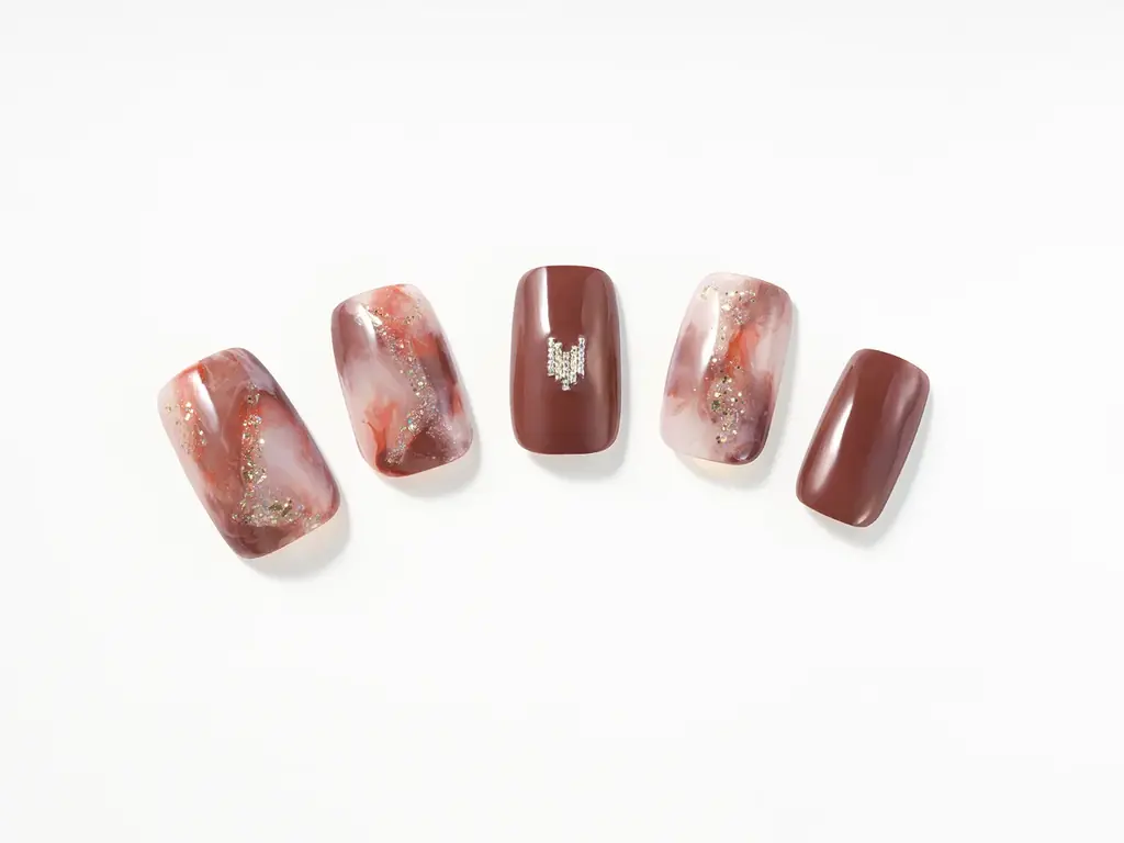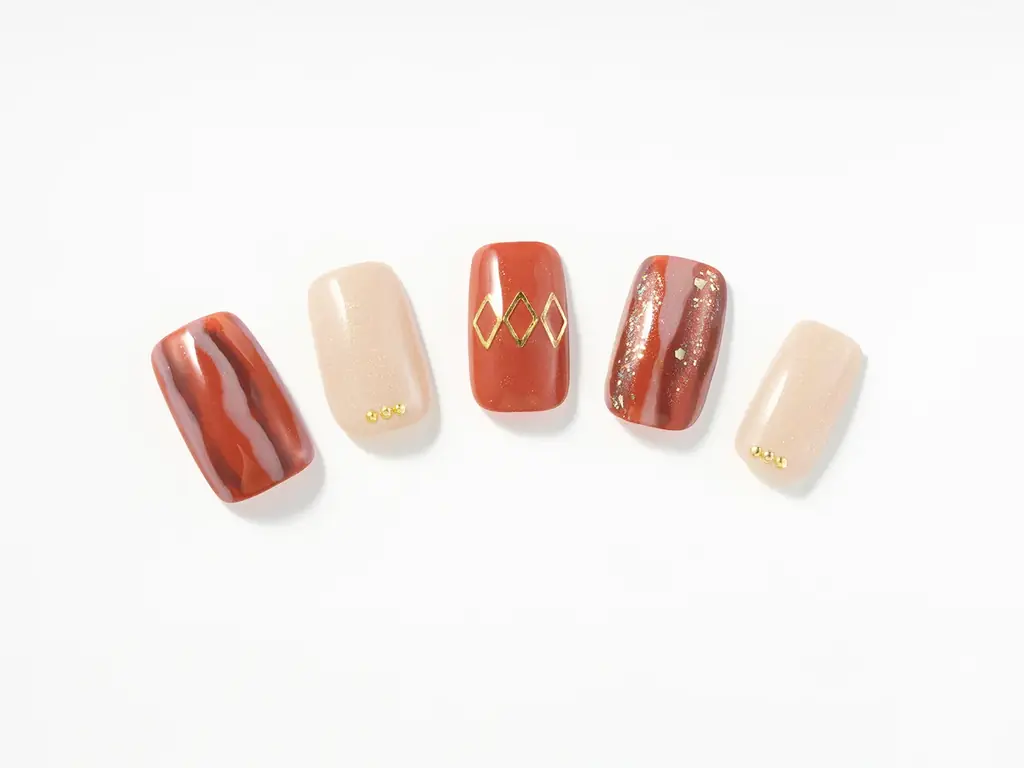 仕様:レッドの偏光ラメとゴールドラメをブレンド。温かみのある赤茶系の色味が冬の装いに映えます。