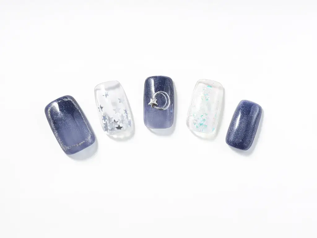 イメージ:水面に映る星のように穏やかにラメが揺れる深みブルー。