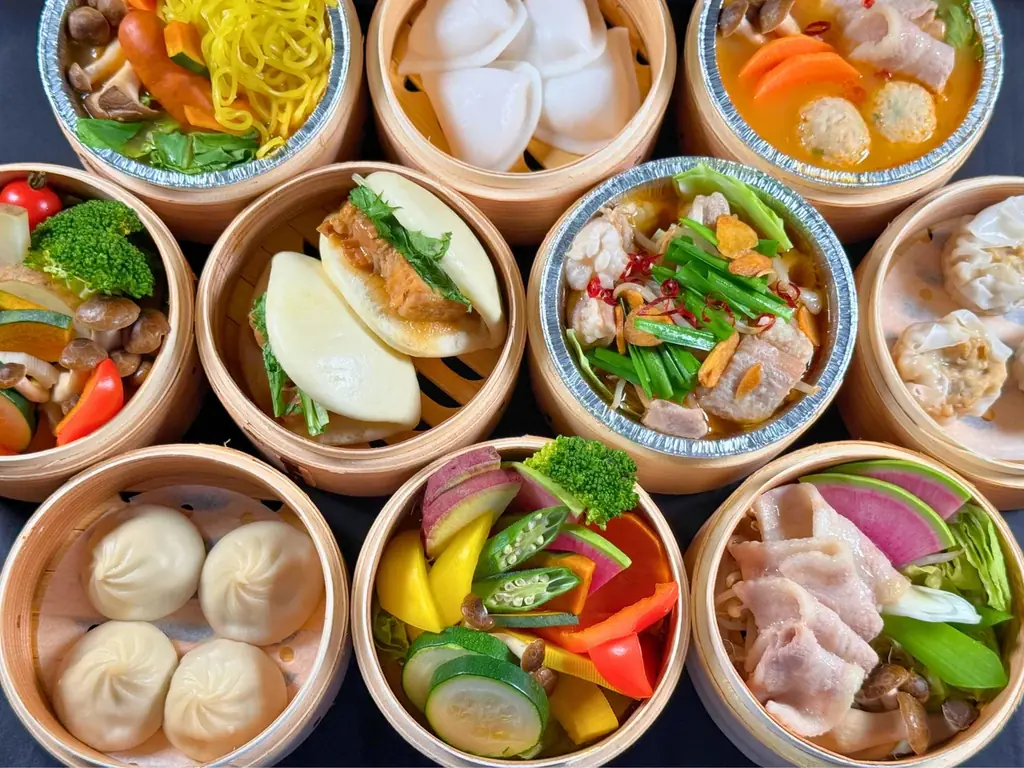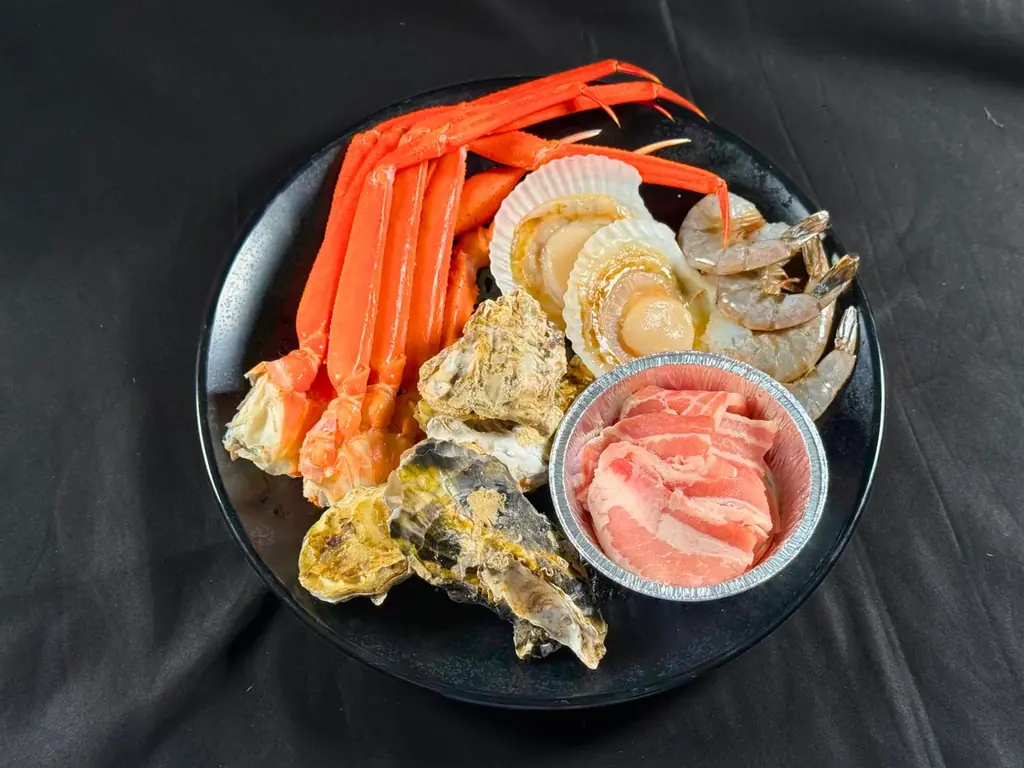 | 主な特徴 | 約50種類の食材食べ放題、豪華海鮮ワンプレート(カニ・牡蠣・帆立等)、選べるスープでオリジナル鍋、各テーブルにせいろ蒸しセット完備 |