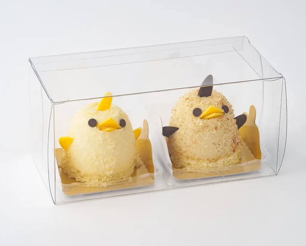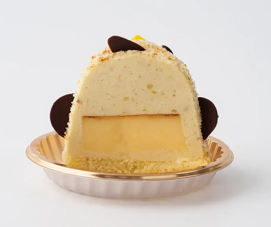 「ぴよりん」は、名古屋コーチンの卵を使った濃厚なプリンを、香り豊かなバニラのババロアで包み、粉末状のスポンジで外側を覆って“ひよこ”の形に仕立てた生スイーツです。名古屋駅構内の店舗や春日井市の製造工房併設店舗で販売されている既存商品です。