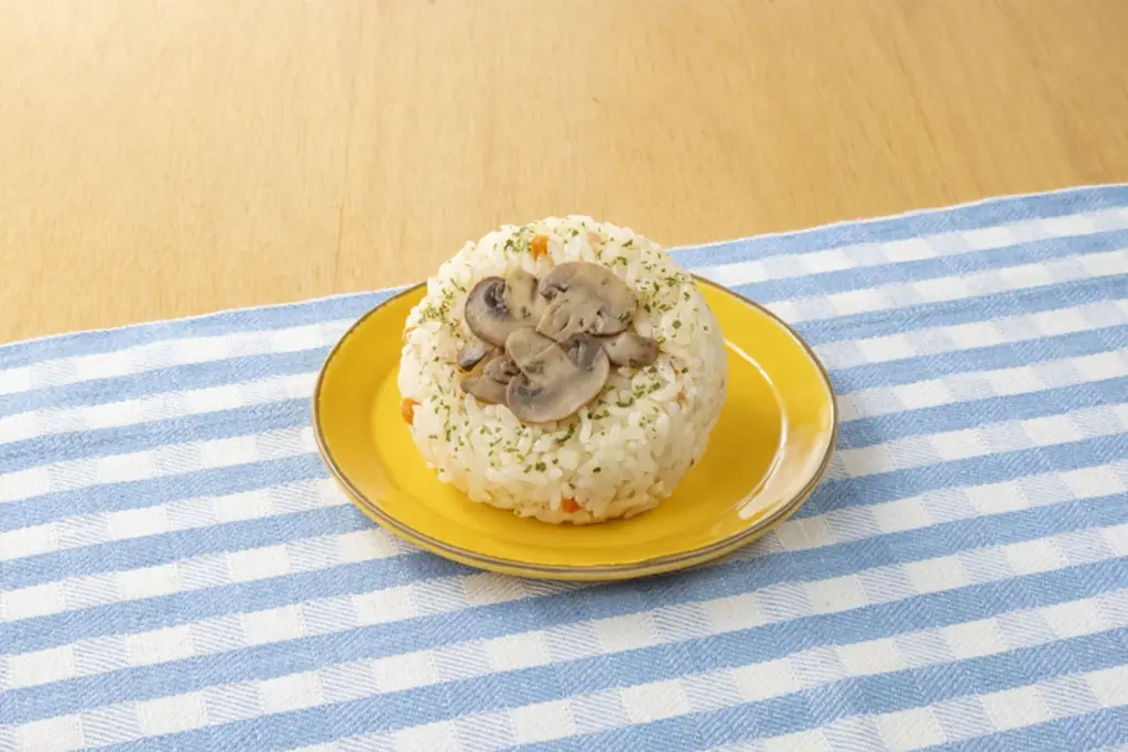 - マッシュルーム煮汁を活用したバターピラフ風おむすび