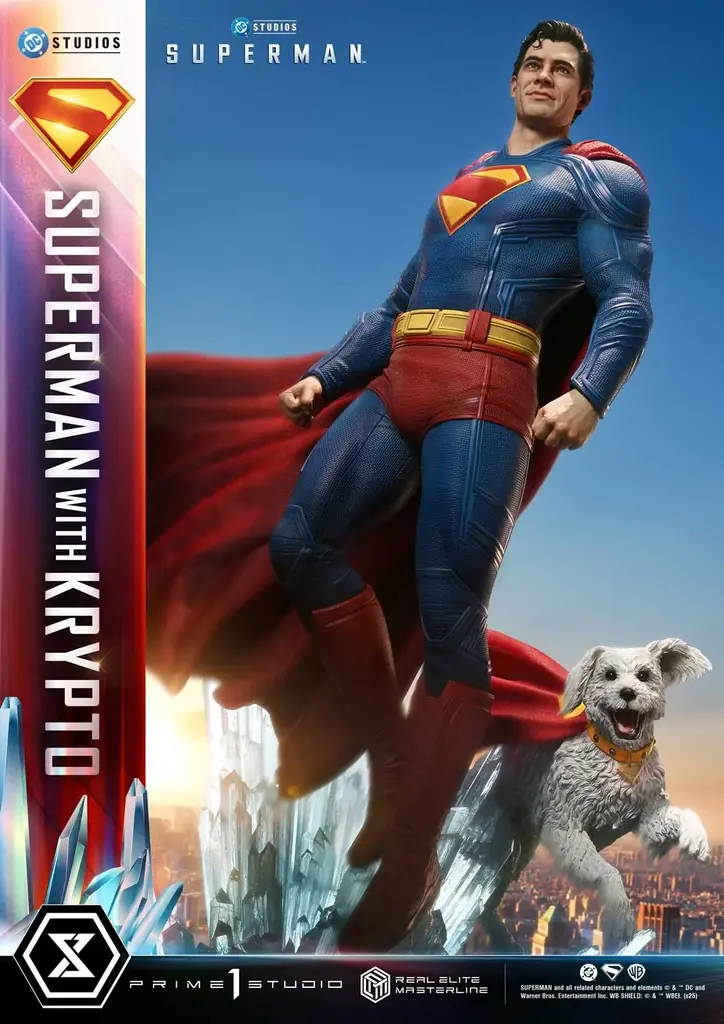 映画版スーパーマンと相棒クリプトを、高精細なスタチューで再現