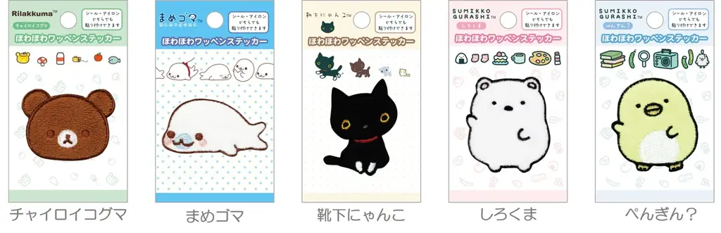| ほわほわワッペンステッカー | 各550円 | アイロン接着・シール両用のワッペン。気軽に貼れるシールタイプとしても使用可能。 |