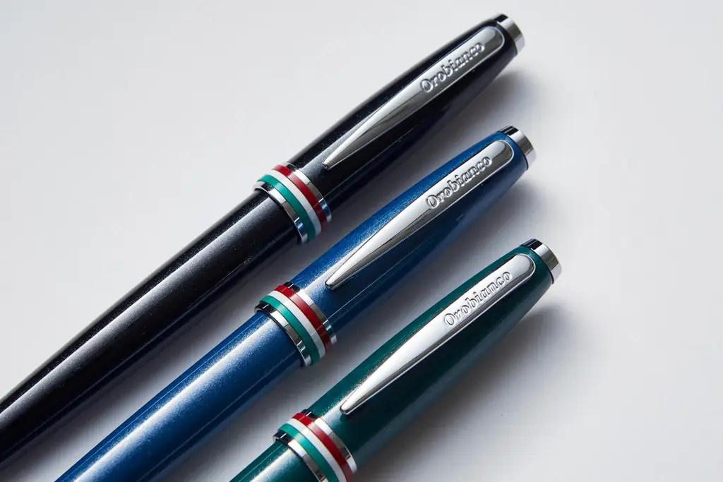 「Aura」はイタリア語で〈オーラ・雰囲気〉を意味する名称が示す通り、使用者の個性や所持する場面に溶け込みつつも存在感を放つことを意図したモデルです。ラメ入りの光沢を持つボディと、中央リングに配されたイタリアのトリコロールをあしらったデザインにより、見た目の上品さとブランドのアイデンティティを両立させています。