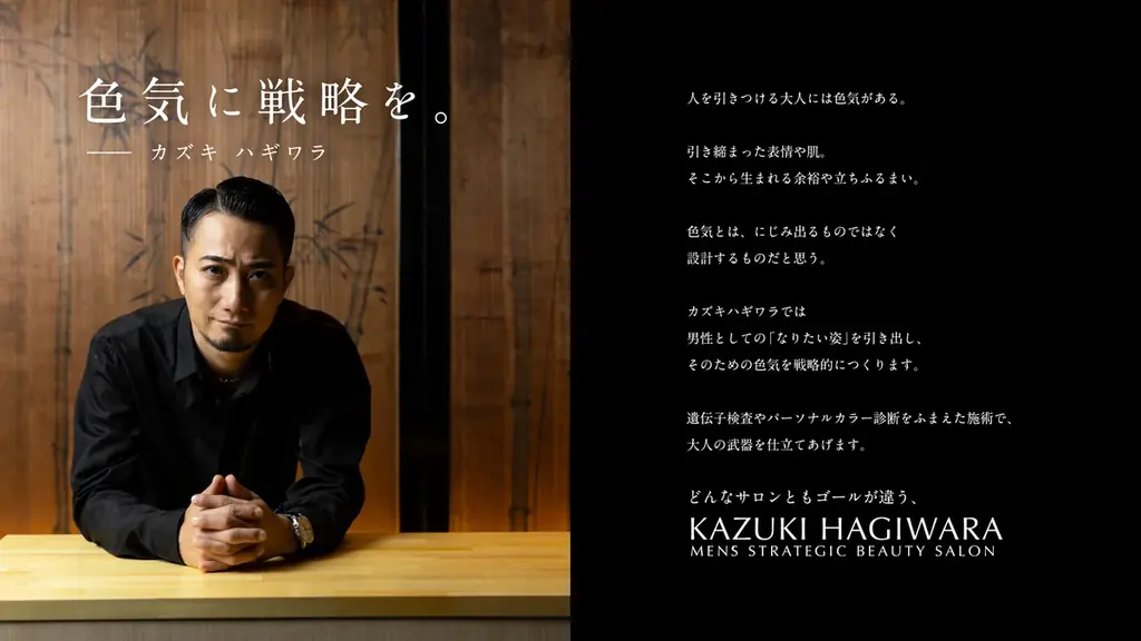 ここまでに挙げた情報を整理すると、Kazuki Hagiwara kyotoは「遺伝子検査やパーソナルカラー診断を組み合わせ、男性の色気を戦略的に設計する」ことを主軸にしたメンズサロンです。完全予約制のプライベート空間での個別プロデュースを特徴としています。