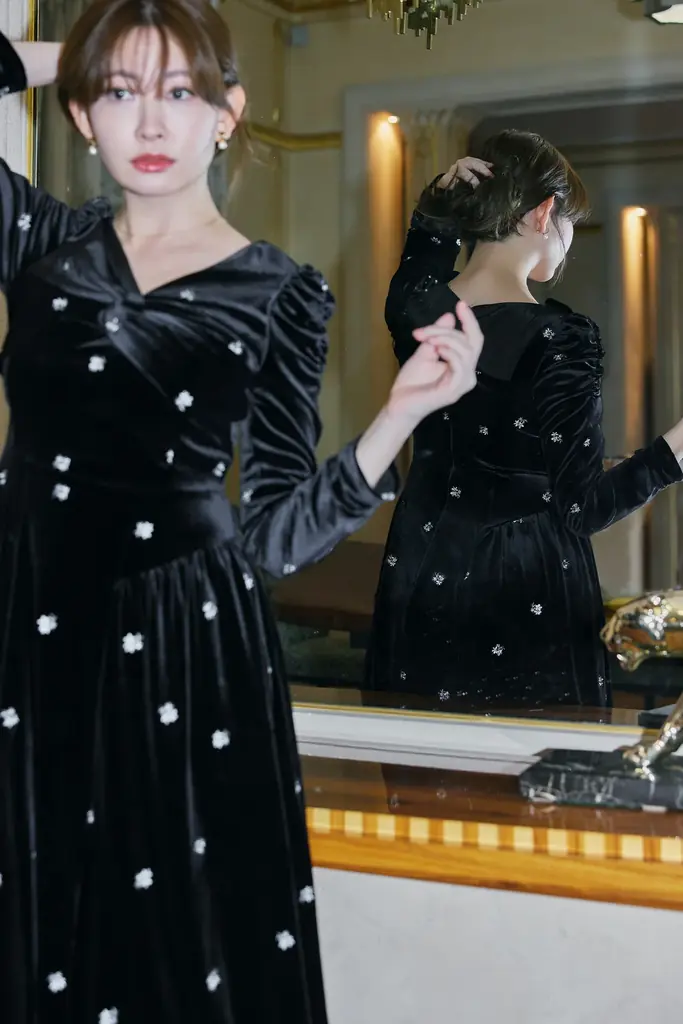 Belmont Floral Velour Dress ¥26,000 black S, M