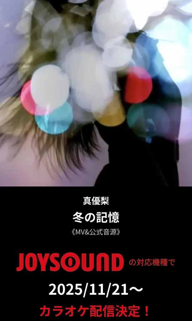 また、真優梨の人気曲「冬の記憶」についても、カラオケ配信に関する情報が発表されている。こちらは2025年11月21日(金)よりJOYSOUND対応機種でカラオケ配信が開始される予定である。