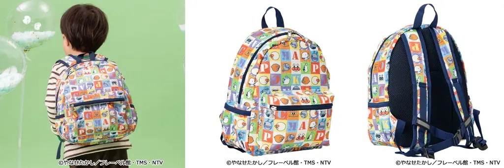 アンパンマンとなかまたちの表情をブロック風の総柄でデザインした雑貨シリーズです。リュックや巾着はポリエステル製で汚れがつきにくい素材を採用しており、タオルにはお名前欄とループが付いているため保育園や幼稚園で使いやすい仕様になっています。シリーズで揃えることが想定されています。