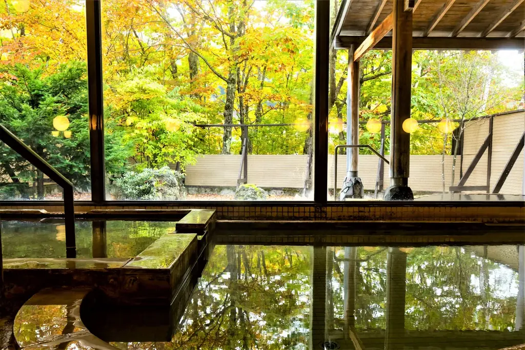 館内の大浴場には名湯「鹿沢温泉」が引湯されており、画像で紹介されている浴場は「雲井の湯」として案内されています。支配人は関谷剛。所在地は〒377-1695 群馬県吾妻郡嬬恋村田代1312、施設の詳細は休暇村嬬恋鹿沢の公式ページをご参照ください:https://www.qkamura.or.jp/kazawa/。